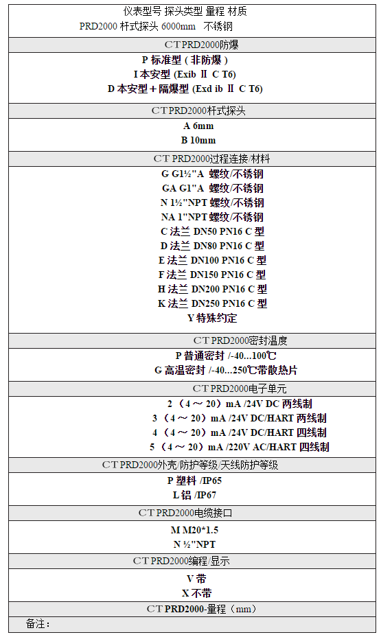 導(dǎo)波雷達(dá)液位計(jì)選型表: