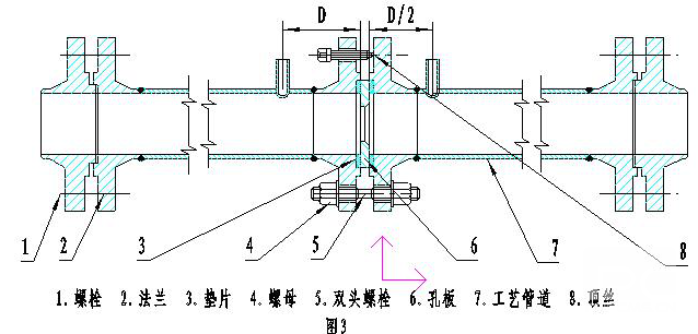 1、 安裝時(shí)應(yīng)保證孔板中心、法蘭中心、管道中心和墊片同心,不同心度不得超過(guò)0.002D/β。