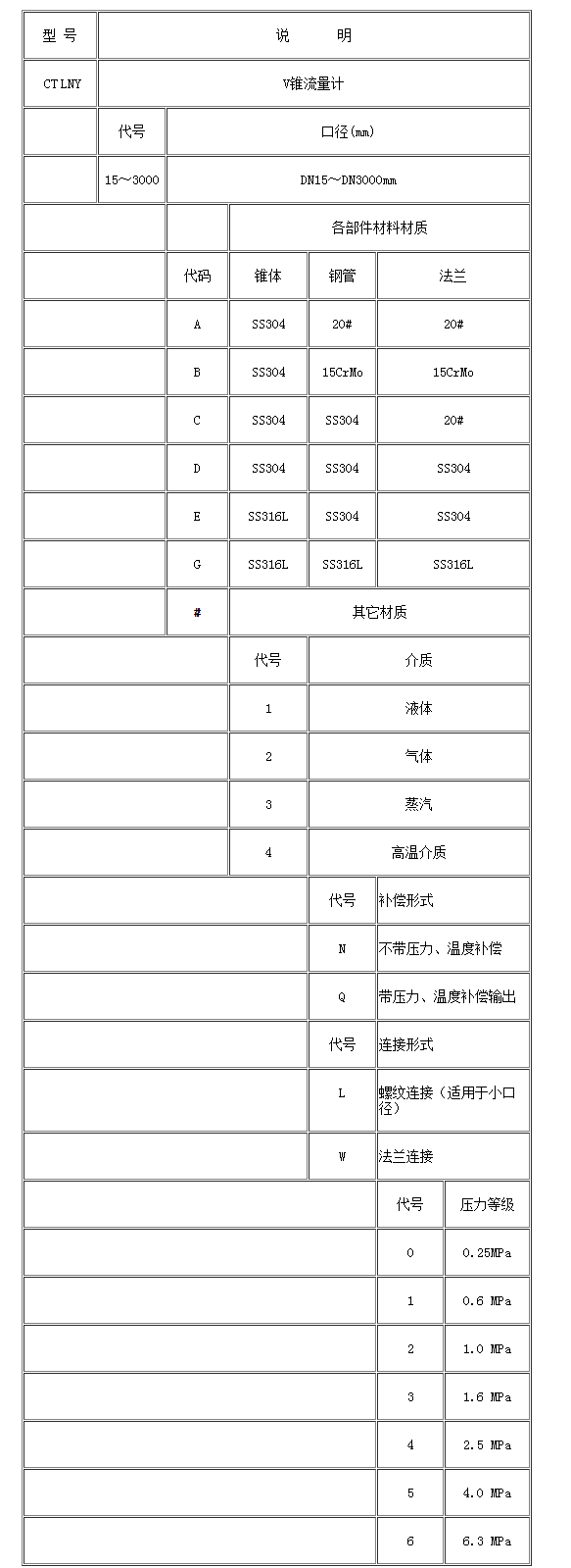 五、V錐流量計(jì)產(chǎn)品選型說明
