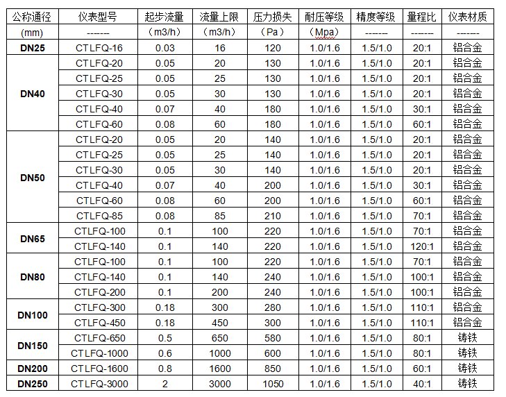 ■始動流量小,量程比寬,適合于計量符合變動大的氣體流量。