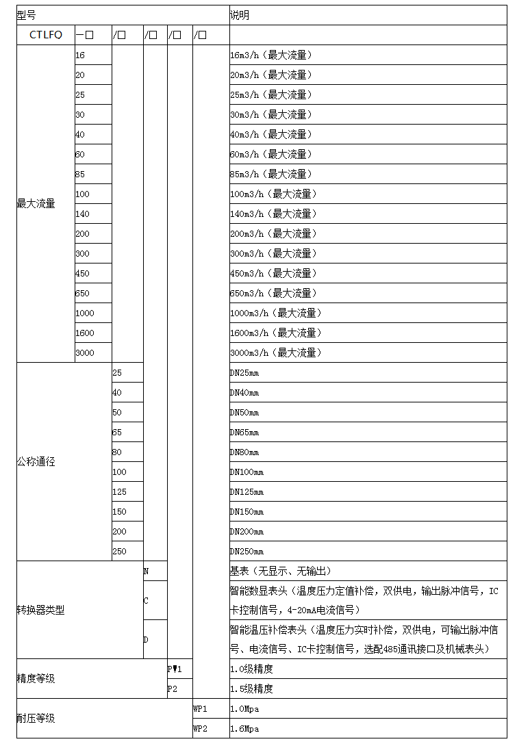 儀表選型(請先參考‘3.3始動流量及流量上限’表格)