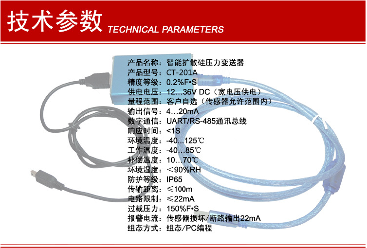靈敏度高、精度高、抗過載能力強。采用進口傳感器制造,傳感器和放大電路高度集成;采全體不銹鋼為一體,電路零點和增益無須調(diào)整;抗干擾能力強,耐酸堿,長期穩(wěn)定可靠.